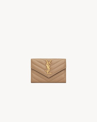 ENVELOPE WALLET DECORATED WITH THE CASSANDRE AND QUILTED TOPSTITCHING. - LEATHER LINING - GOLD-TONE HARDWARE - SNAP-BUTTON CLOSURE - FOUR CARD SLOTS - ONE FLAT POCKET AT THE BACK - DIMENSIONS: 13.5 X 9.5 X 3 CM / 5.3" X 3.7" X 1.1" - 70% LAMBSKIN 30% BRASS - STYLE ID 414404AAA442357 - MADE IN ITALY