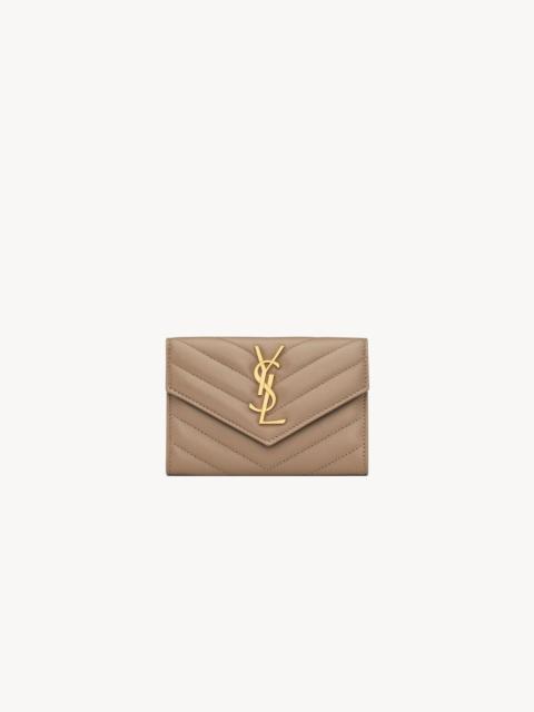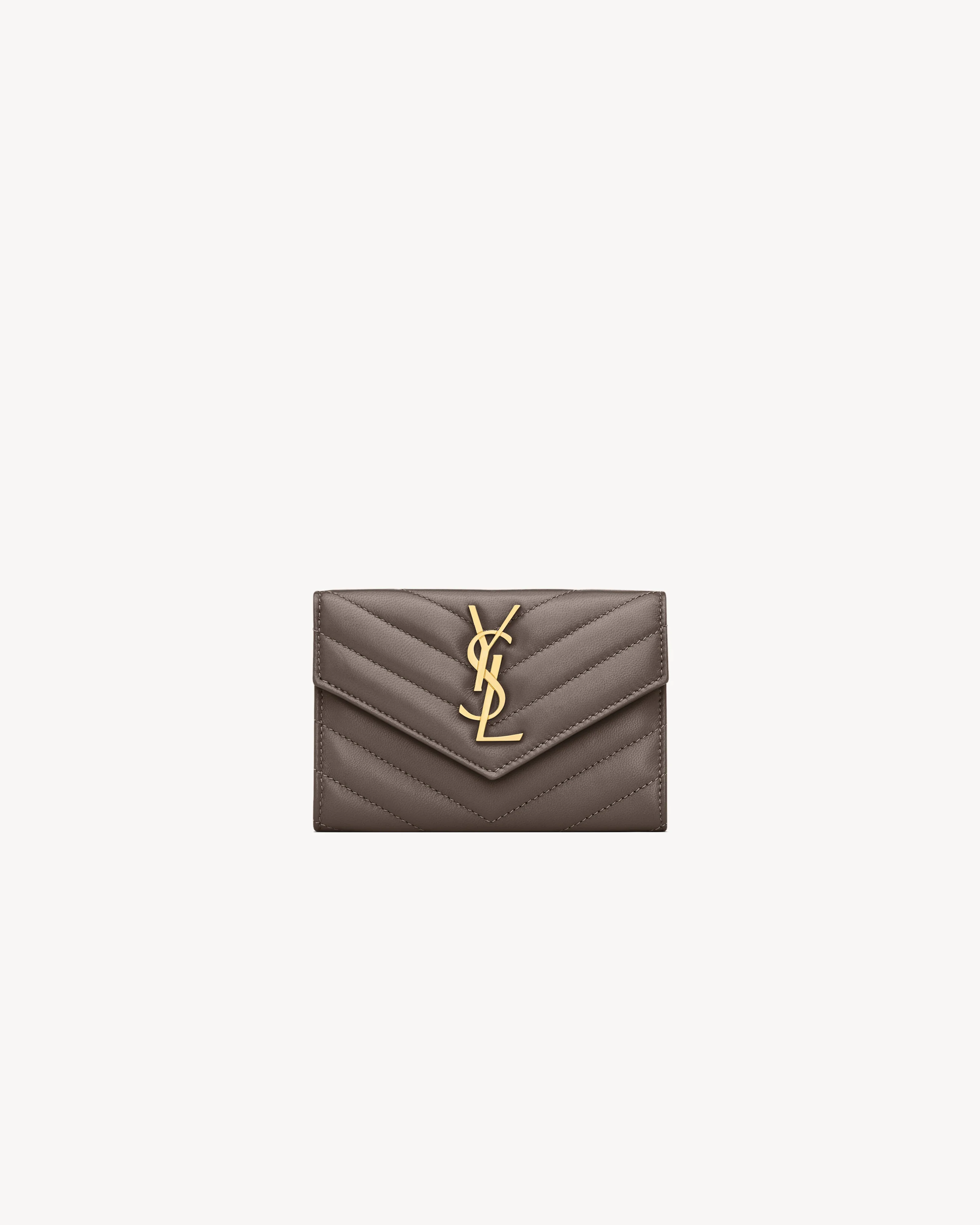 ENVELOPE WALLET DECORATED WITH THE CASSANDRE AND QUILTED TOPSTITCHING. - LEATHER LINING - GOLD-TONE HARDWARE - SNAP-BUTTON CLOSURE - FOUR CARD SLOTS - ONE FLAT POCKET AT THE BACK - DIMENSIONS: 13.5 X 9.5 X 3 CM / 5.3" X 3.7" X 1.1" - LAMBSKIN, BRASS - STYLE ID 414404AAA441997 - MADE IN ITALY