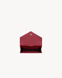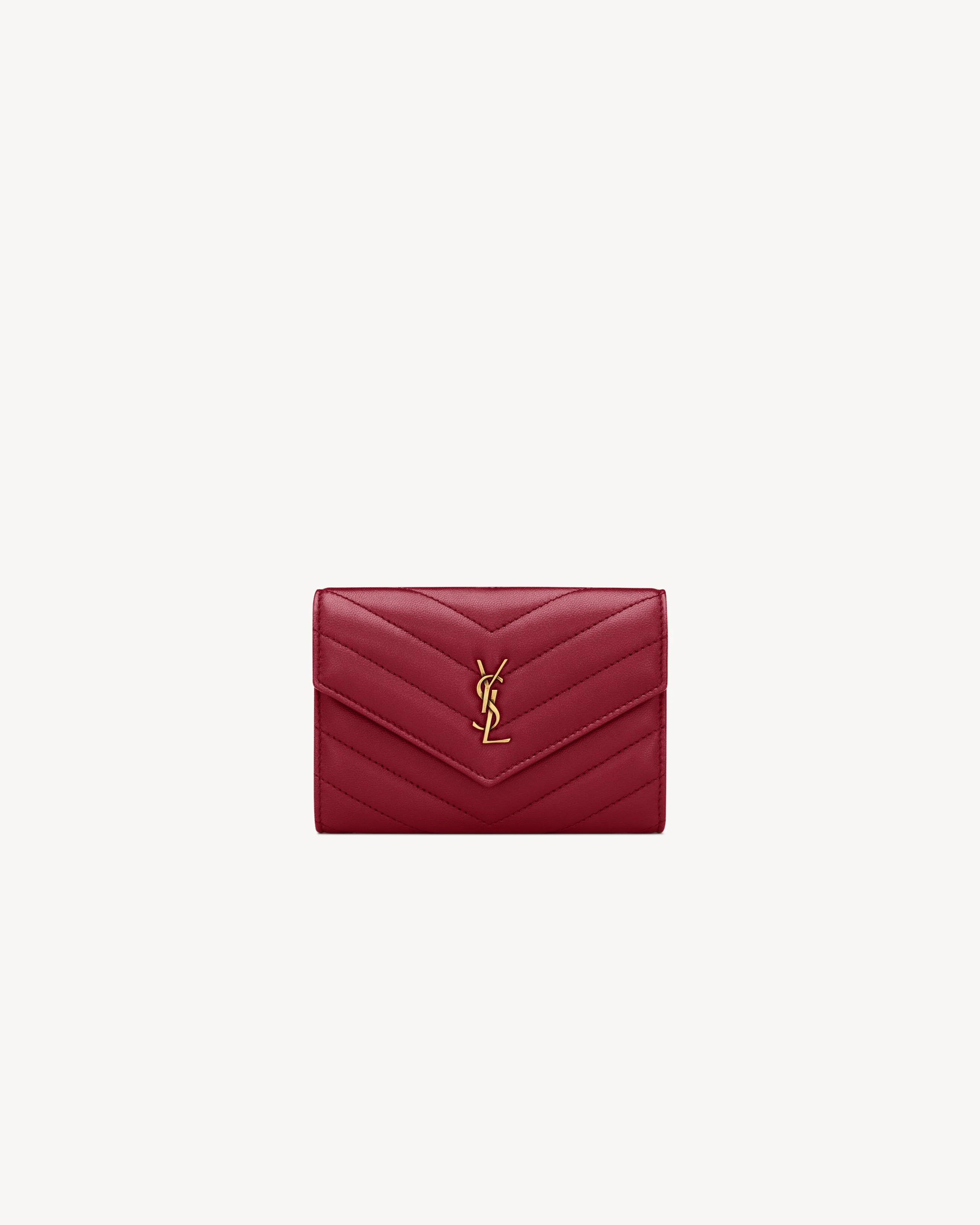 ENVELOPE WALLET DECORATED WITH THE CASSANDRE AND QUILTED TOPSTITCHING. - BRONZE-TONE HARDWARE - SNAP-BUTTON CLOSURE - FOUR CARD SLOTS - ONE FLAT POCKET AT THE BACK - DIMENSIONS: 13.5 X 9.5 X 3 CM / 5.3" X 3.7" X 1.2" - LAMBSKIN BRASS - STYLE ID 863726AAEAX6946 - MADE IN ITALY