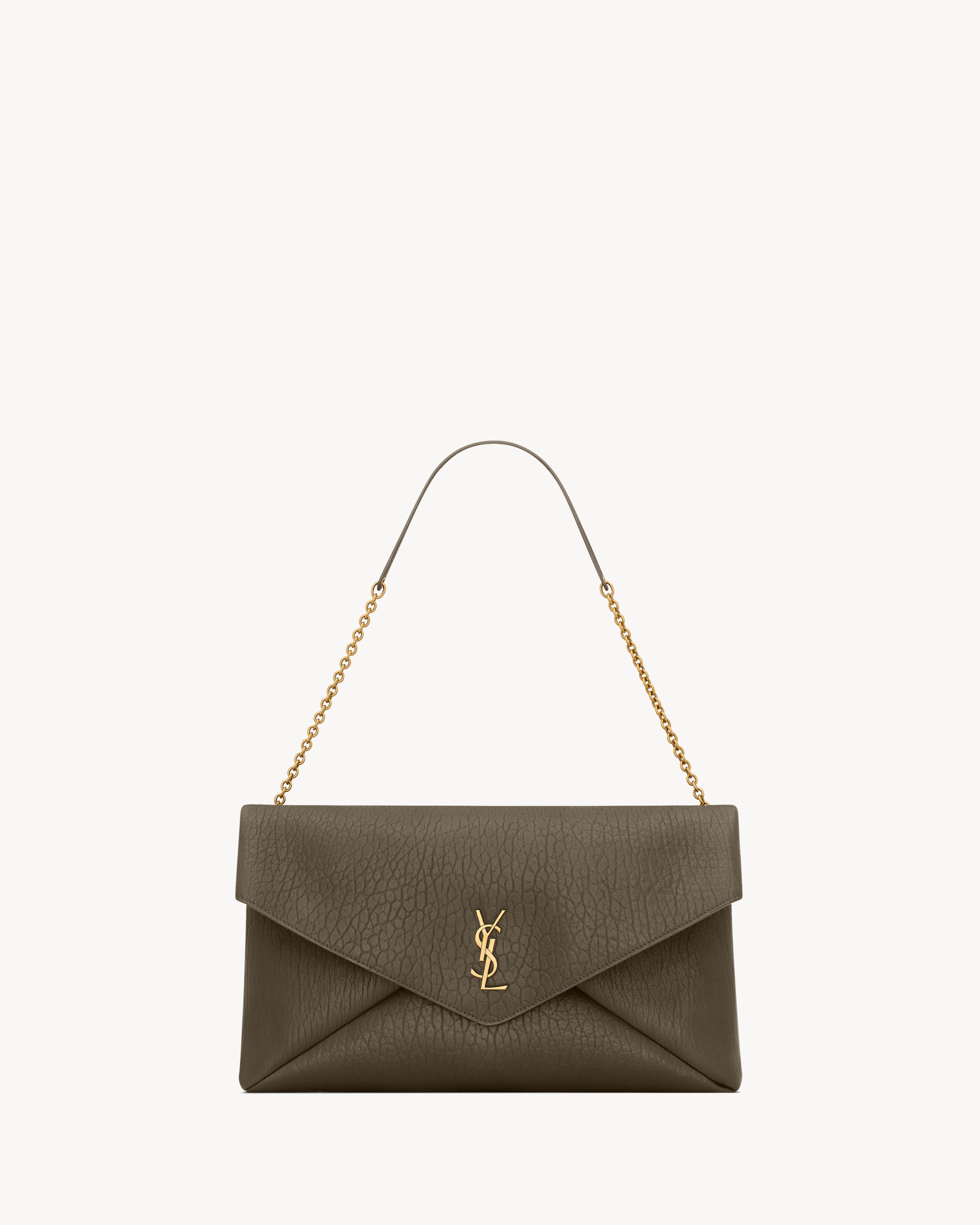 EXTRA LARGE CHAIN POUCH IN SUPPLE LAMBSKIN, DECORATED WITH THE CASSANDRE. A STOWABLE CABLE-CHAIN STRAP ALLOWS THIS MODERN AND VERSATILE BAG TO BE WORN ON THE SHOULDER OR HELD AS A CLUTCH. - LEATHER LINING - BRONZE-TONE HARDWARE - SNAP-BUTTON CLOSURE - ONE ZIP POCKET - DIMENSIONS: 35 X 22 X 3–4.2 CM / 13.8" X 8.7" X 1.2–1.7" - STRAP DROP: 28 CM / 11" - 90% LAMBSKIN 10% BRASS - STYLE ID 841702AACYT3212 - MADE IN ITALY