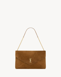 EXTRA-LARGE CHAIN POUCH IN SUEDE, DECORATED WITH THE CASSANDRE. A STOWABLE CABLE-CHAIN STRAP ALLOWS THIS MODERN AND VERSATILE BAG TO BE WORN ON THE SHOULDER OR HELD AS A CLUTCH. - COTTON LINING - BRONZE-TONE HARDWARE - SNAP-BUTTON CLOSURE - ONE ZIP POCKET - DIMENSIONS: 35 X 22 X 3–4.2 CM / 13.8" X 8.7" X 1.2–1.7" - STRAP DROP: 28 CM / 11" - CALFSKIN LEATHER, METAL - STYLE ID 8558021U80W2916 - MADE IN ITALY
