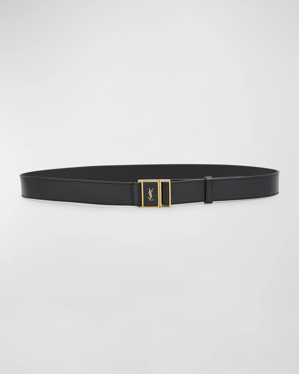 - Saint Laurent "Cassandre" belt in leather and bio-resin - Approx. 1.2"W - Cut to size - Magnetic YSL buckle - Tonal stitching - Professional cleaning recommended - Made in Italy