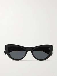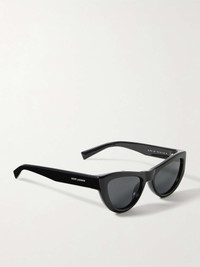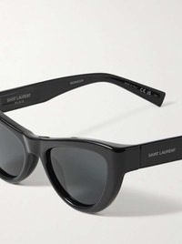 EDITORS'NOTES SAINT LAURENT Eyewear's cat-eye sunglasses are undeniably chic and timeless. They've been made in Italy from glossy black acetate and are fitted with tonal lenses. The logo's moniker is in silver lettering along the temples. DETAILS & CARE - Black acetate - Come with a case - 100% UV protection
