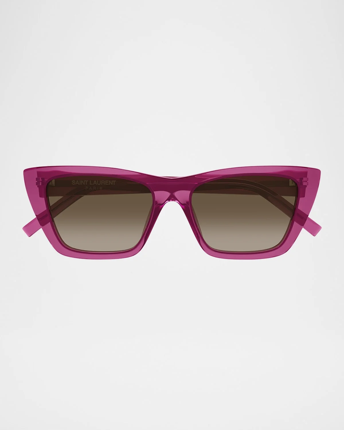 - Shield your eyes in style. Made with retro-inspired rectangular frames, these brown acetate New Wave sunglasses from Saint Laurent Eyewear make protecting your eyes as a stylish affair. They'll hide a multitude of sins, including evidence of a late night. Featuring cat-eye frames, tortoiseshell detailing, dark tinted lenses, a logo at the temple and straight arms with curved tips. This item comes with a protective case. - Saint Laurent cat-eye sunglasses in acetate. - Lens/bridge/temple (in mm): 53-16-145. - High bridge fit. - Monochromatic lenses. - Logo detail at temples. - Includes hard case and cleaning cloth. - 100% UVA/UVB protection. - Made in Italy. - Proposition 65 warning for California residents