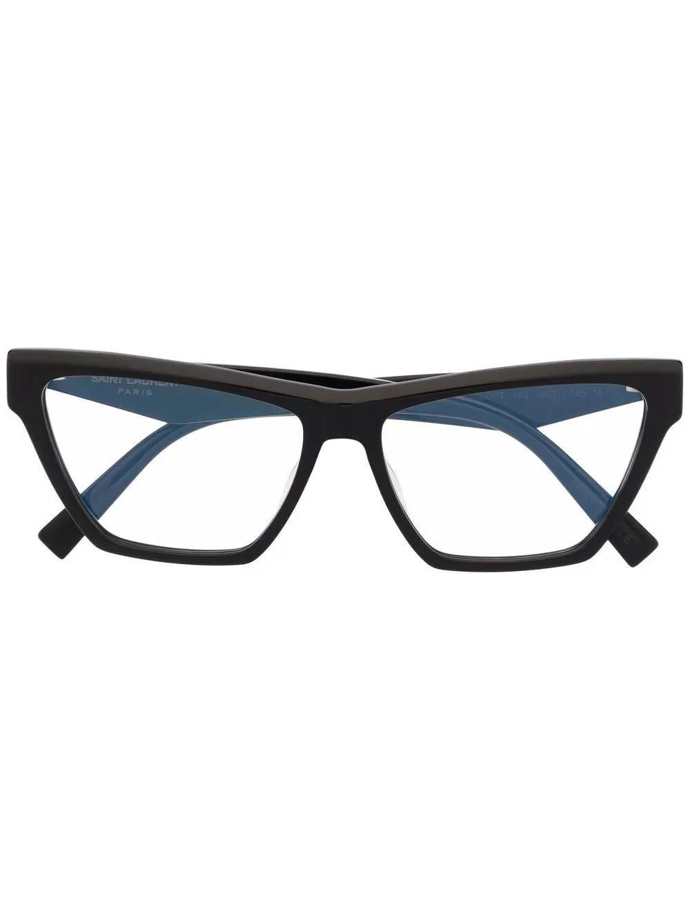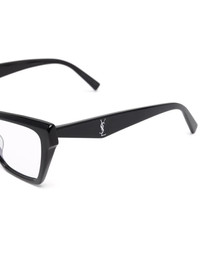 wayfarer-frame glasses jet-black wayfarer frame clear lenses signature YSL logo plaque All glasses from FARFETCH are sold as non-prescription frames. These glasses come with a protective case. Made in Italy Composition Acetate 100% SIZE & FIT Measurement Arm Length 5.7 in(14.5 cm) Bridge Width 0.59 in(1.5 cm) Lens Diameter 2.28 in(5.8 cm) Total Width 5.66 in(14.4 cm)
