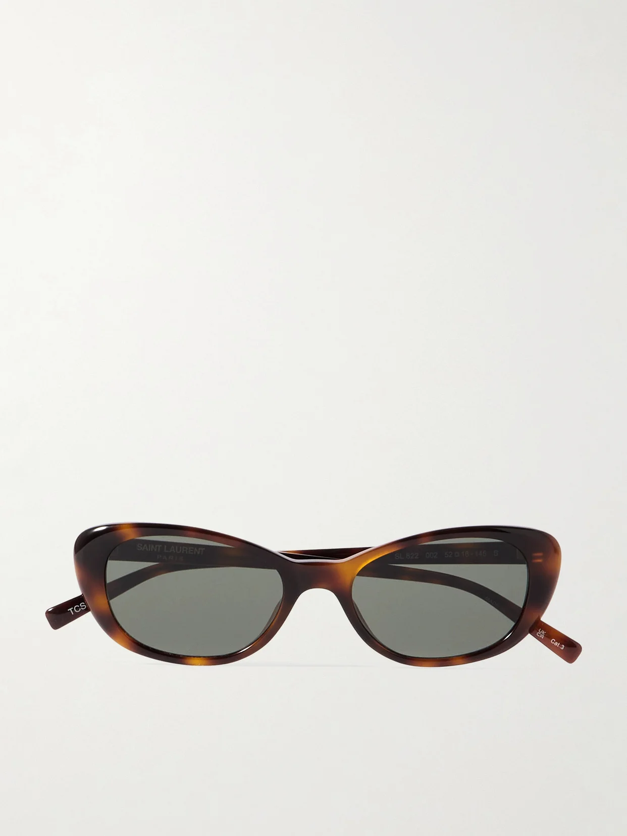 SAINT LAURENT Eyewear's sunglasses have elegant cat-eye frames that'll suit a variety of face shapes. They've been made in Italy from marbled tortoiseshell acetate and have slim arms stamped with the brand's logo.
