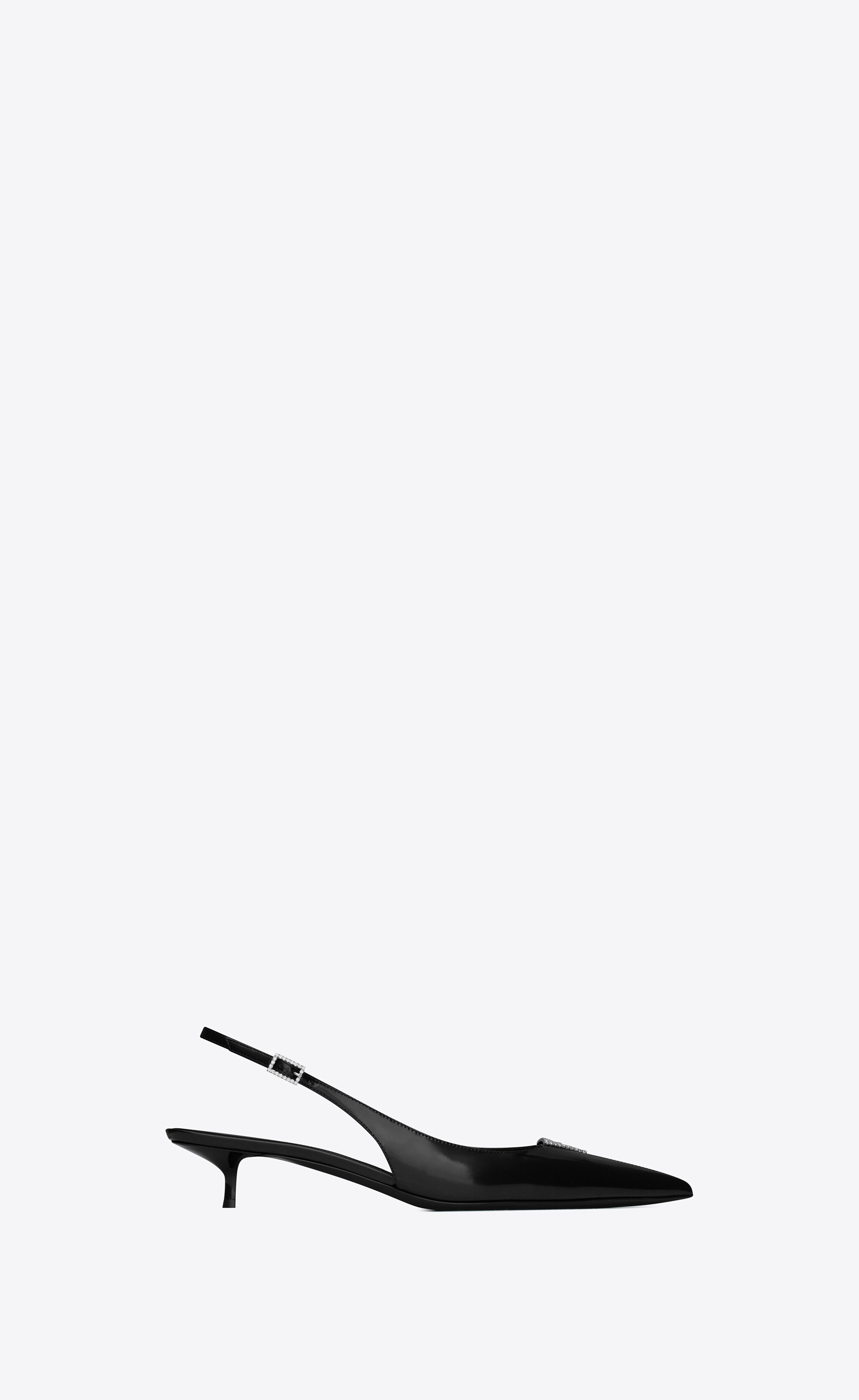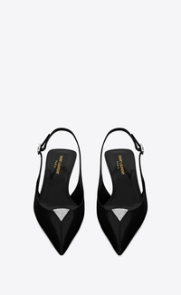 SLINGBACK PUMPS WITH A POINTED TOE AND RHINESTONE TRIANGLE DETAIL, FEATURING A KITTEN HEEL AND ADJUSTABLE SLINGBACK STRAP WITH RHINESTONE BUCKLE. - 90% CALFSKIN LEATHER, 10% CRYSTAL - LEATHER SOLE - ADJUSTABLE SLINGBACK STRAP - TOTAL HEEL HEIGHT: 3 CM / 1.1 INCHES - STYLE ID 755341AACG01000 - MADE IN ITALY
