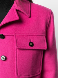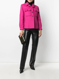 chest flap pockets buttoned jacket Like any other fashion aware millennial, on Wednesdays you wear pink. This chest flap pockets buttoned jacket, however, might make you want to change your weekly plans. You'll gladly wear this Saint Laurent beauty every chance you get. Made in Italy Composition Lining: Cupro 60%, Cotton 40% Outer: Wool 90%, Cashmere 10% SIZE & FIT Model measurements Height 5 ft 11 in(1.8 m) Bust/Chest 33.07 in(84 cm) Hips 37.4 in(95 cm) Waist 25.19 in(64 cm) FittingInformation This piece fits true to size. We recommend you get your regular size Cut for a loose fit Made with a mid-weight non-stretch fabric Measurement SLEEVE LENGTH 22.83 in(58 cm) Shoulder Width 16.14 in(41 cm) LENGTH 24.4 in(62 cm) WAIST 37 in(94 cm) BUST 37 in(94 cm) Washing instructions Dry Clean Only
