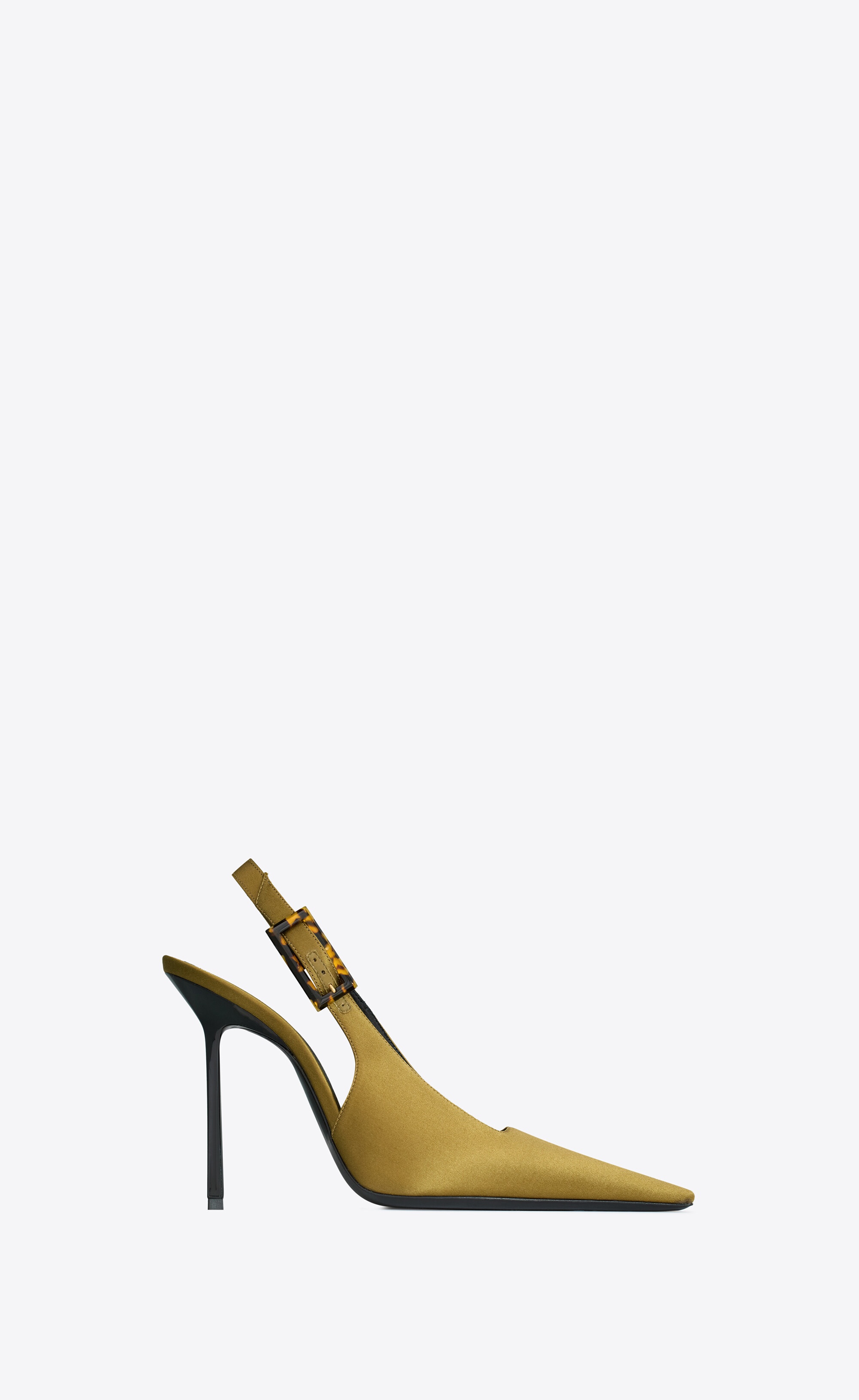 SLINGBACK PUMPS WITH A POINTED TOE AND STILETTO HEEL, FEATURING A LOW SQUARE-CUT VAMP AND ADJUSTABLE SLINGBACK STRAP WITH TORTOISESHELL BUCKLE. - SILK, BRASS, CRYSTAL - RESPONSIBLE WOOL AND ORGANIC SILK - LEATHER SOLE - ADJUSTABLE ANKLE STRAP - TOTAL HEEL HEIGHT: 11 CM / 4.3 INCHES - STYLE ID 7898069QNAO2309 - MADE IN ITALY