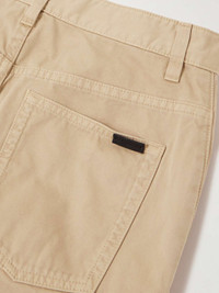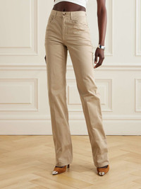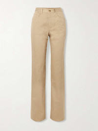 EDITORS'NOTES The neutral sand color of SAINT LAURENT's 'Clyde' jeans make them look like tailored pants at first glance. Made from denim, they're designed to sit high on the waist and have a classic five-pocket construction and straight-leg shape. SIZE & FIT Model measurements: - Fits true to size, take your normal size - High-rise, cut for a straight-leg fit - Mid-weight, non-stretchy denim - Size 26 jeans have an inside leg of 33"/ 84cm - Model is 177cm/ 5'10" and is wearing a size 26 - Bust: 79cm/ 31" - Waist: 61cm/ 24" - Hip: 89cm/ 35" DETAILS & CARE - Sand denim - Button and concealed zip fastening at front - 100% cotton; trim: 100% leather (Calf); buttons: 100% horn (Buffalo) - Machine wash