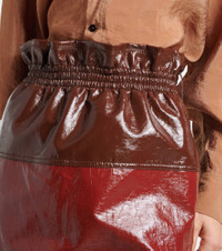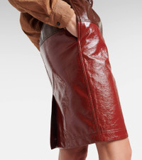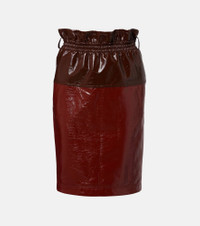 Elevate your everyday wardrobe with standout pieces like this pencil skirt by Saint Laurent. Featuring a colorblocked pattern, the style is made from coated cotton and features a shirred waist, a back slit, and concealed pockets. Product Details - Material: 100% cotton - Care instructions: dry clean - Made in Italy - Color: brown - Designer color name: Marron/Rouge - Coating: 100% polyurethane - Lining: 100% cotton - Closure: concealed zipped back - Elasticated waistband - Belt loops - Short vent - Item number: P01128193 Size & Fit - True to size - Elasticated waist - Non-stretchy fabric - High-waisted - slit length 26,0cm-10" - The model seen in the picture is 178cm-5'10" and wearing a size FR 34