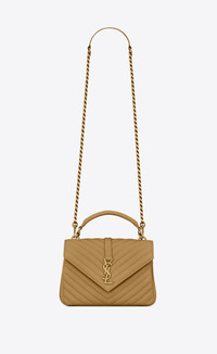 SAINT LAURENT MONOGRAM BAG MADE WITH METAL-FREE TANNED LEATHER, DECORATED WITH CHEVRON-QUILTED OVERSTITCHING AND THE ICONIC YSL SIGNATURE. - 100% CALFSKIN LEATHER - DIMENSIONS: 24 X 17 X 6.5 CM / 9.4 X 6.7 X 2.7 INCHES - HANDLE DROP: 6.5 CM / 2.6 INCHES - SHOULDER STRAP DROP: 55 CM / 21.7 INCHES - BRONZE-TONED METAL HARDWARE - MAGNETIC SNAP CLOSURE - INTERIOR: TWO MAIN COMPARTMENTS SEPARATED BY A ZIPPED POCKET, ONE CARD SLOT - EXTERIOR: ONE FLAT POCKET AT THE BACK - GROSGRAIN LINING - STYLE ID 810827146 - MADE IN ITALY