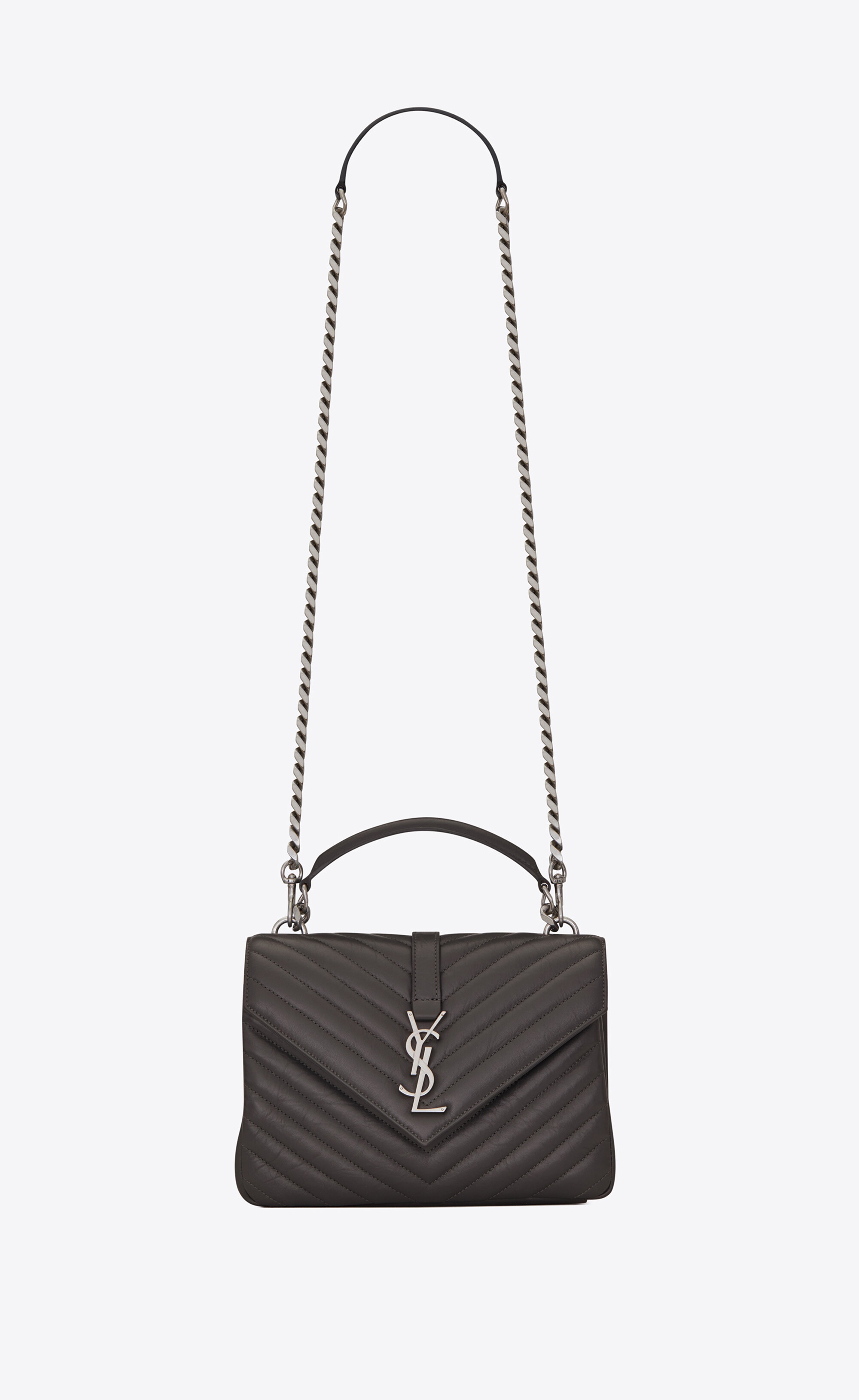 SAINT LAURENT MONOGRAM BAG DECORATED WITH CHEVRON-QUILTED OVERSTITCHING AND METAL YSL INITIALS, FEATURING A TOP HANDLE AND REMOVABLE CHAIN AND LEATHER SHOULDER STRAP. CAN BE WORN CROSSBODY. - 100% LAMBSKIN - DIMENSIONS: 24 X 17 X 6,5 CM / 9.4 X 6.6 X 2.5 INCHES - MAGNETIC SNAP CLOSURE - STYLE ID 809455776 - MADE IN ITALY
