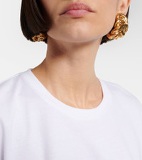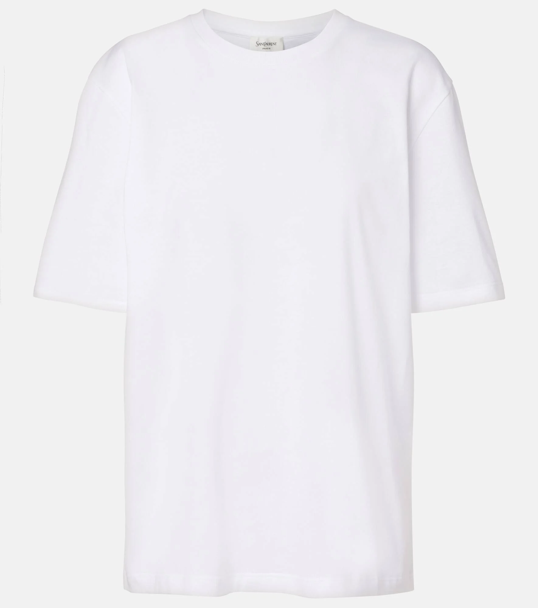 Since its conception in 1961, Saint Laurent has been coveted for its elegant Parisian aesthetic. This T-shirt is crafted from soft cotton jersey and boasts a classic crew neckline. Product Details - Material: 100% cotton - Care instructions: machine wash at 30 degrees - Made in Italy - Color: white - Designer color name: White - Item color: white - Embroidery: 100% polyester - Collar: crewneck - Item number: P01146002 Size & Fit - True to size - Designed for a loose fit - Non-stretchy fabric - Falls below the hip - The model seen in the picture is 178cm-5'10" and wearing a size XS