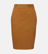 Since its conception in 1961, Saint Laurent has been coveted for its elegant Parisian aesthetic. Crafted from pure cotton, this pencil skirt is cut to a midi silhouette and features a back slit and a leather logo patch. Product Details - Material: 100% cotton - Care instructions: machine wash at 30 degrees - Made in Italy - Designer color name: Sao Paulo Camel - Item color: brown - Details: 100% calf leather - Contains non-textile parts of animal origin - Closure: zipped side - Pockets: slant pockets - Belt loops - Short vent - Item number: P01086645 Size & Fit - True to size - Non-stretchy fabric - High-waisted - slit length 22cm-8.5" - The model seen in the picture is 178cm-5'10" and wearing a size 26