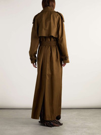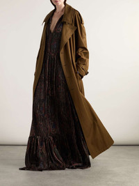 EDITORS'NOTES When it comes to trans-seasonal dressing, there's no better investment than a classic trench coat. SAINT LAURENT's iteration is made from cotton-twill and has the typical shoulder epaulettes, generous storm flap and double-breasted front. The detachable belt allows you to cinch the oversized shape, while the brown shade will go with just about everything in your closet. SIZE & FIT Model measurements: - Fits true to size, take your normal size - Designed for a relaxed fit, use the belt to cinch in at the waist - Mid-weight, non-stretchy fabric - Model is 177cm/ 5'10" and is wearing a FR 36 - Bust: 81cm/ 32” - Waist: 66cm/ 26” - Hip: 90cm/ 35.5” DETAILS & CARE - Brown cotton-twill - Button fastenings through double-breasted front - 100% cotton; buttons: 100% horn (Buffalo); lining:100% silk;