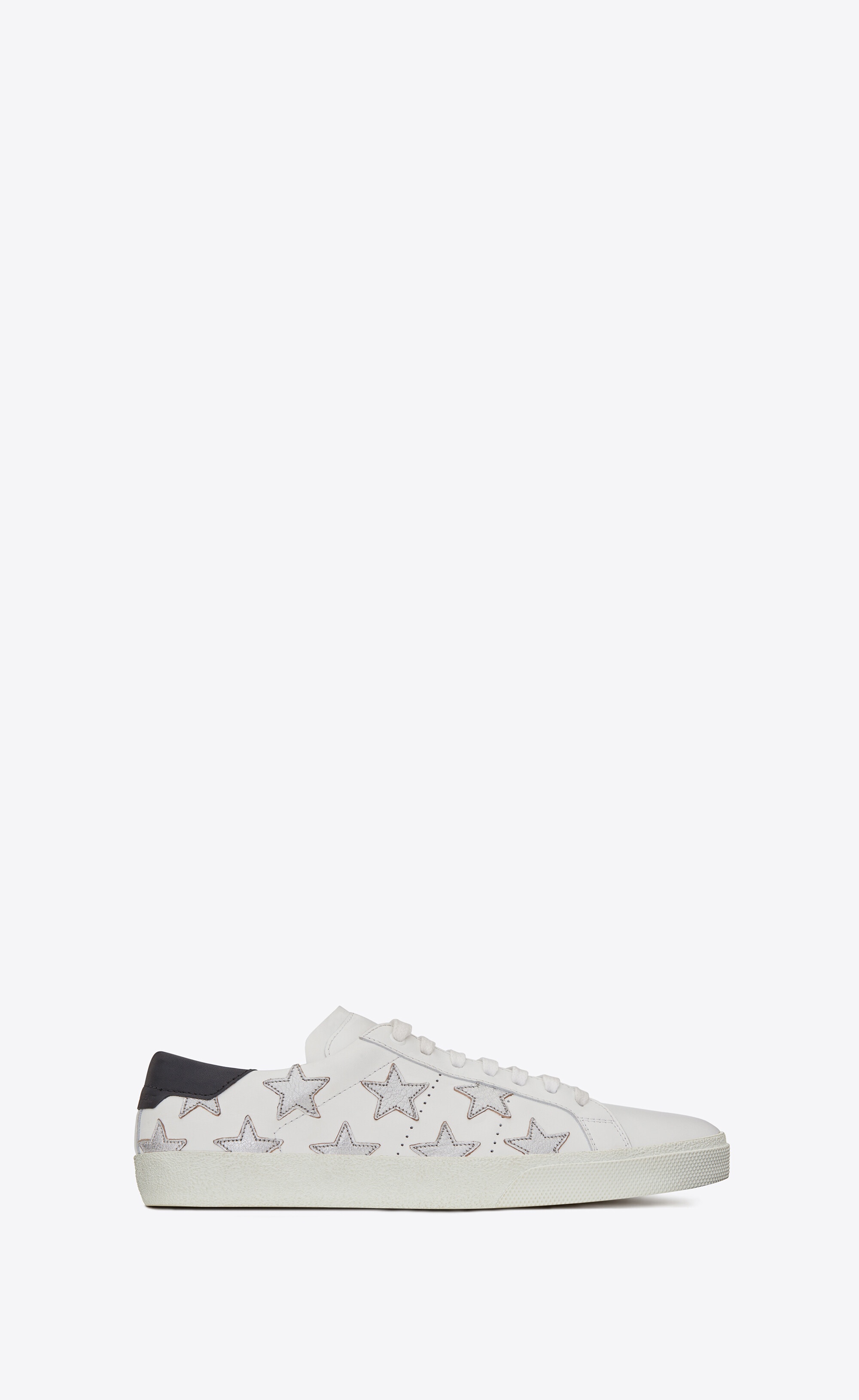 LOW-PROFILE SNEAKERS WITH PERFORATED STRIPES ALONG SIDES, METALLIC LEATHER STARS, SL/06 EMBOSSED ALONG ANKLE, SAINT LAURENT SIGNATURE EMBOSSED BACK TAB AND CONTRASTING RUBBER SOLE. - 100% CALFSKIN LEATHER - RUBBER SOLE - STYLE ID 4191970MP109082 - MADE IN ITALY