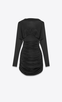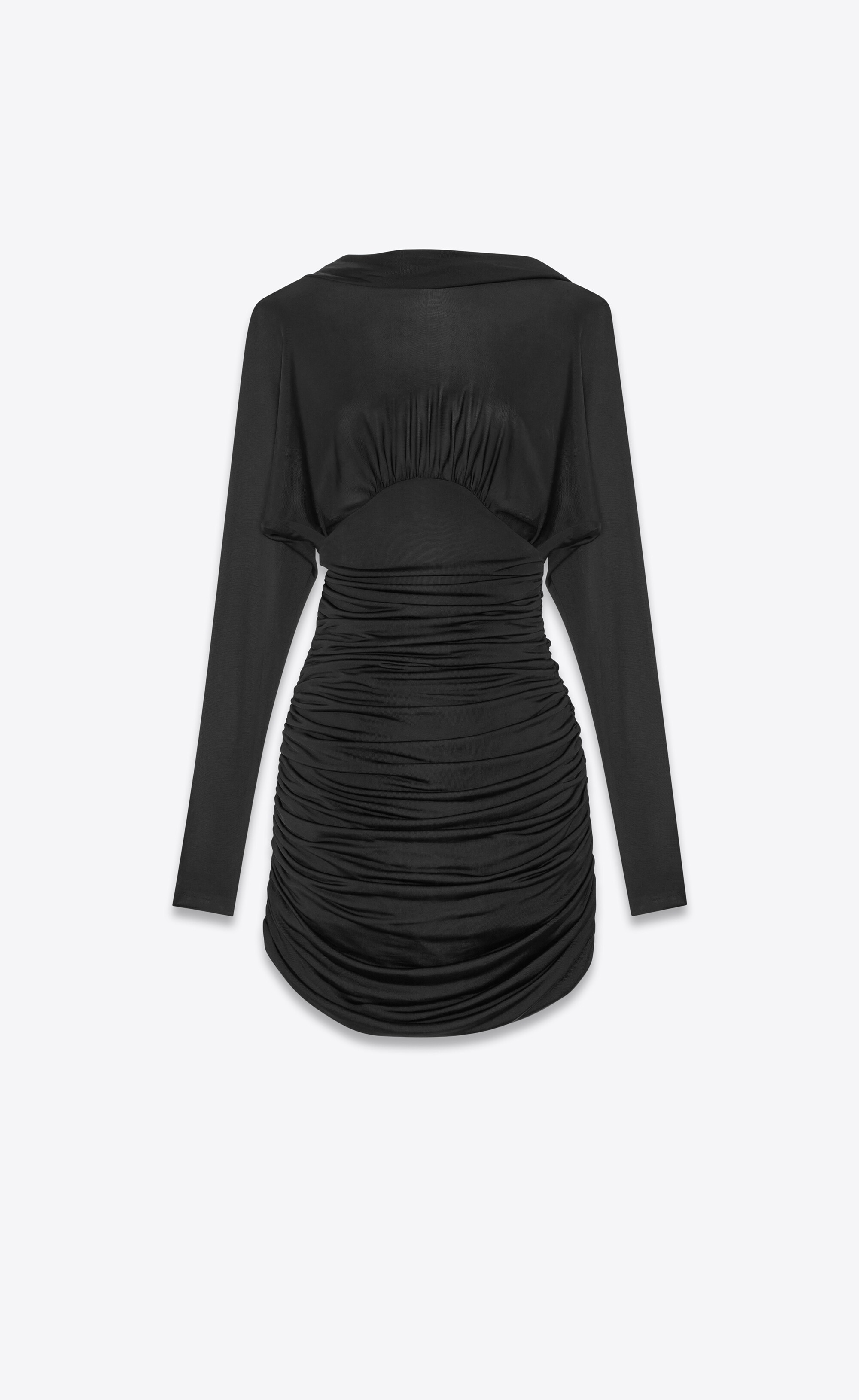 LONG-SLEEVED MINI DRESS MADE WITH VISCOSE FROM CERTIFIED SUSTAINABLY MANAGED FORESTS, FEATURING A COWL BACK AND ALL-OVER GATHERS. - 100% VISCOSE - COWL BACK - STYLE ID 701047Y36UU1000 - MADE IN FRANCE
