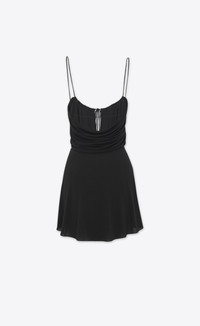 MINI DRESS MADE WITH RESPONSIBLE VISCOSE, FEATURING A GATHERED DRAWSTRING NECKLINE AND SPAGHETTI STRAPS WITH OPEN COWL BACK. - 100% VISCOSE - RESPONSIBLE VISCOSE - SIDE ZIP CLOSURE - DRAWSTRING NECKLINE WITH DEEP SLIT DETAIL - H-BACK SPAGHETTI STRAPS - STYLE ID 750406Y5F631000 - MADE IN ITALY
