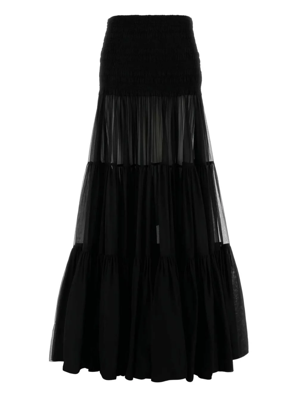 crepe skirt Highlights - Black - Elasticated waistband - Layered design - Tiered skirt Made in France Composition Silk 100% Washing instructions Dry Clean Only