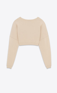 CROPPED FLEECE SWEATSHIRT MADE WITH ORGANIC COTTON, FEATURING A WIDE ROUND NECK, DROP SHOULDERS AND TONAL SAINT LAURENT EMBROIDERY ON THE SLEEVE. - 100% COTTON - ORGANIC COTTON - WIDE ROUND NECK - RIBBED TRIMS - STYLE ID 770879Y36SW9921 - MADE IN FRANCE