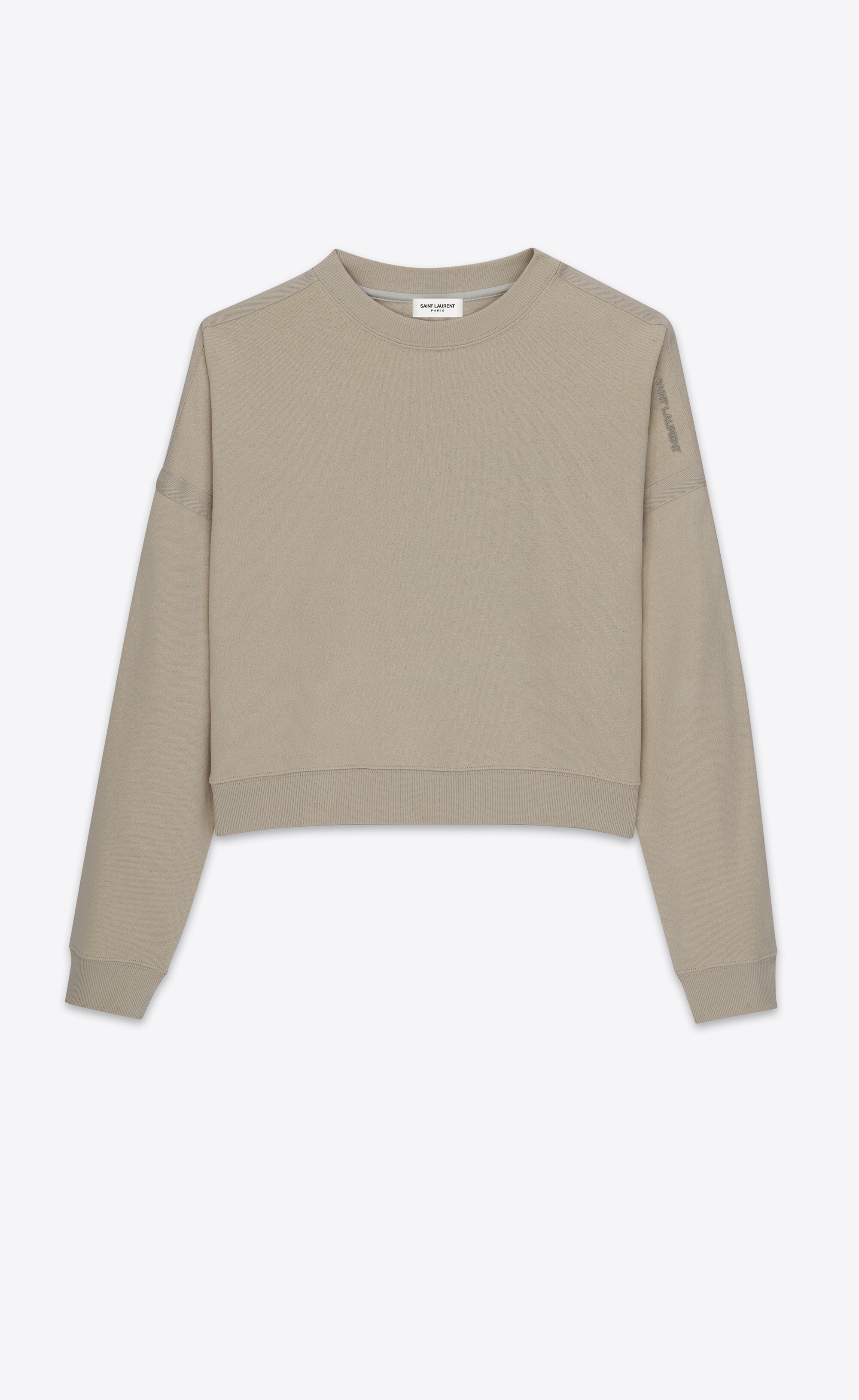 CROPPED CREWNECK SWEATSHIRT MADE WITH ORGANIC COTTON FEATURING RIBBED TRIM AND SAINT LAURENT LOGO ON THE SHOULDER. - 100% COTTON - ORGANIC COTTON - CREWNECK - RIBBED TRIMS - STYLE ID 716525Y36SW2511 - MADE IN FRANCE