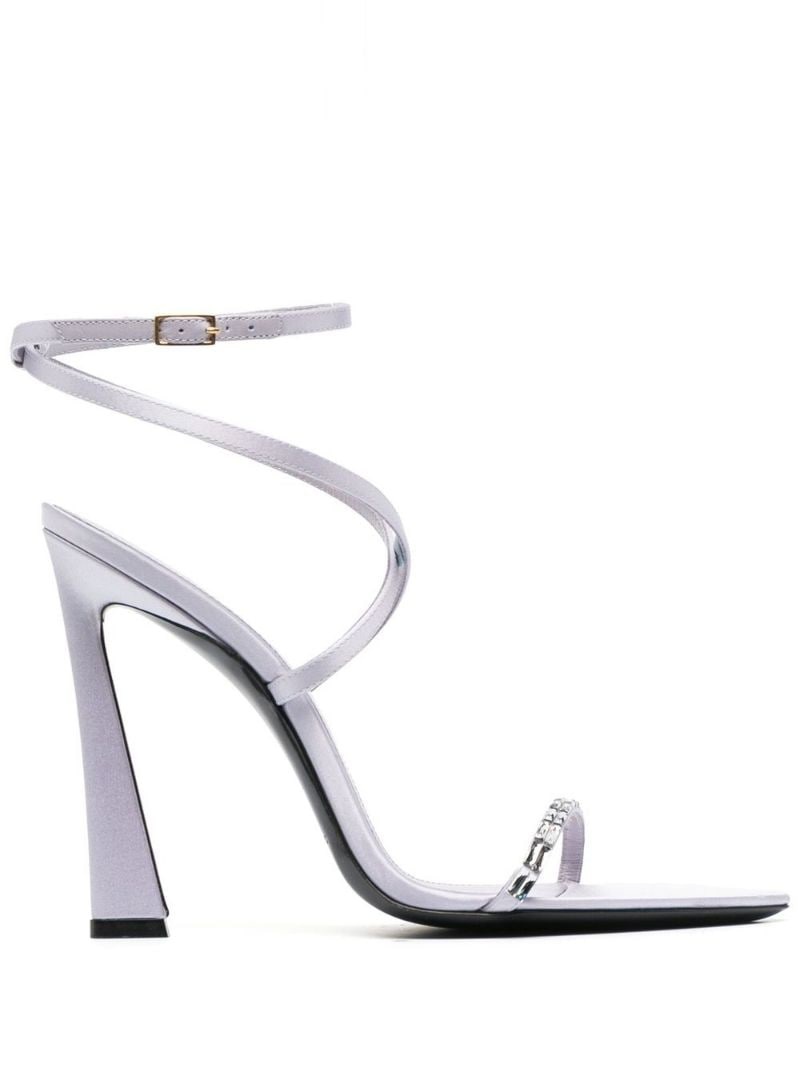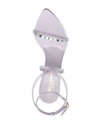 strap-detail open-toe sandals strap-detail open-toe sandals from SAINT LAURENT featuring lilac purple, crystal embellishment, strap detailing, open toe and high heel. Made in Italy Composition Outer: Rubber 100%, Fabric 100% Sole: Calf Leather 100% Lining: Fabric 100%, Calf Leather 100% SIZE & FIT Measurement HEEL 4.7 in(12 cm)