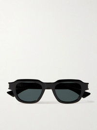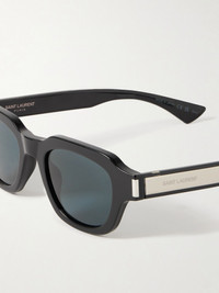 SAINT LAURENT Eyewear's D-frame sunglasses have been made in Japan from a combination of glossy acetate and silver-tone metal, offering a sleek and modern look. They're etched with the logo along the wide arms and have gray tinted lenses. Details & Care - Black acetate, silver-tone metal - 100% UV protection - Come with a case