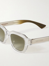 SAINT LAURENT Eyewear's D-frame sunglasses have been made in Japan from a combination of glossy acetate and silver-tone metal, offering a sleek and modern look. They're etched with the logo along the wide arms and have green tinted lenses. Details & Care - Clear acetate, silver-tone metal - 100% UV protection - Come with a case