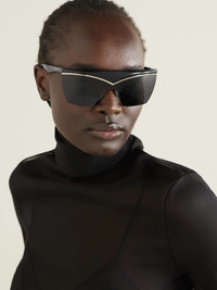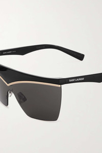 EDITORS'NOTES There are many ways to add polish to your outfit, but few accessories make the same impact as statement sunglasses. SAINT LAURENT Eyewear's D-frame pair is made from lightweight acetate with a winged, gold-tone eyebrow bar. Note the house's logo stamped along the temples. DETAILS & CARE - Gold-tone metal, black acetate - 100% UV protection