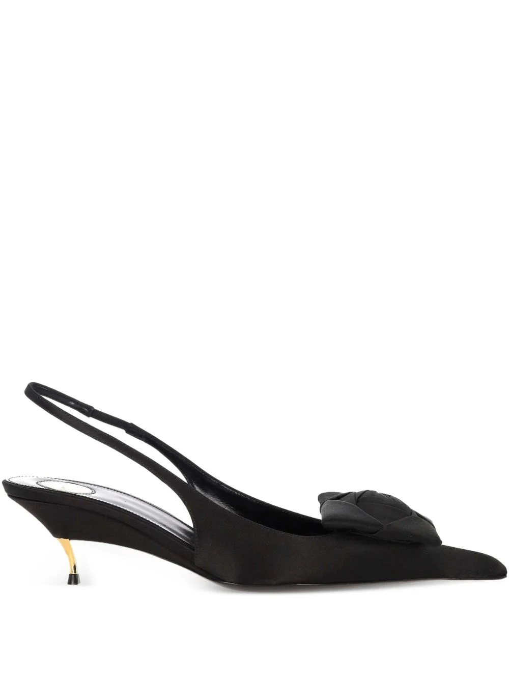50mm Dakota pumps Highlights - Black - Rose detail - Pointed toe - Slingback strap - Kitten heel Made in Italy Composition Outer: Viscose 72%, Silk 28% Lining: Calf Leather 100% Sole: Calf Leather 100% SIZE & FIT Measurement HEEL 1.96 in(5 cm)