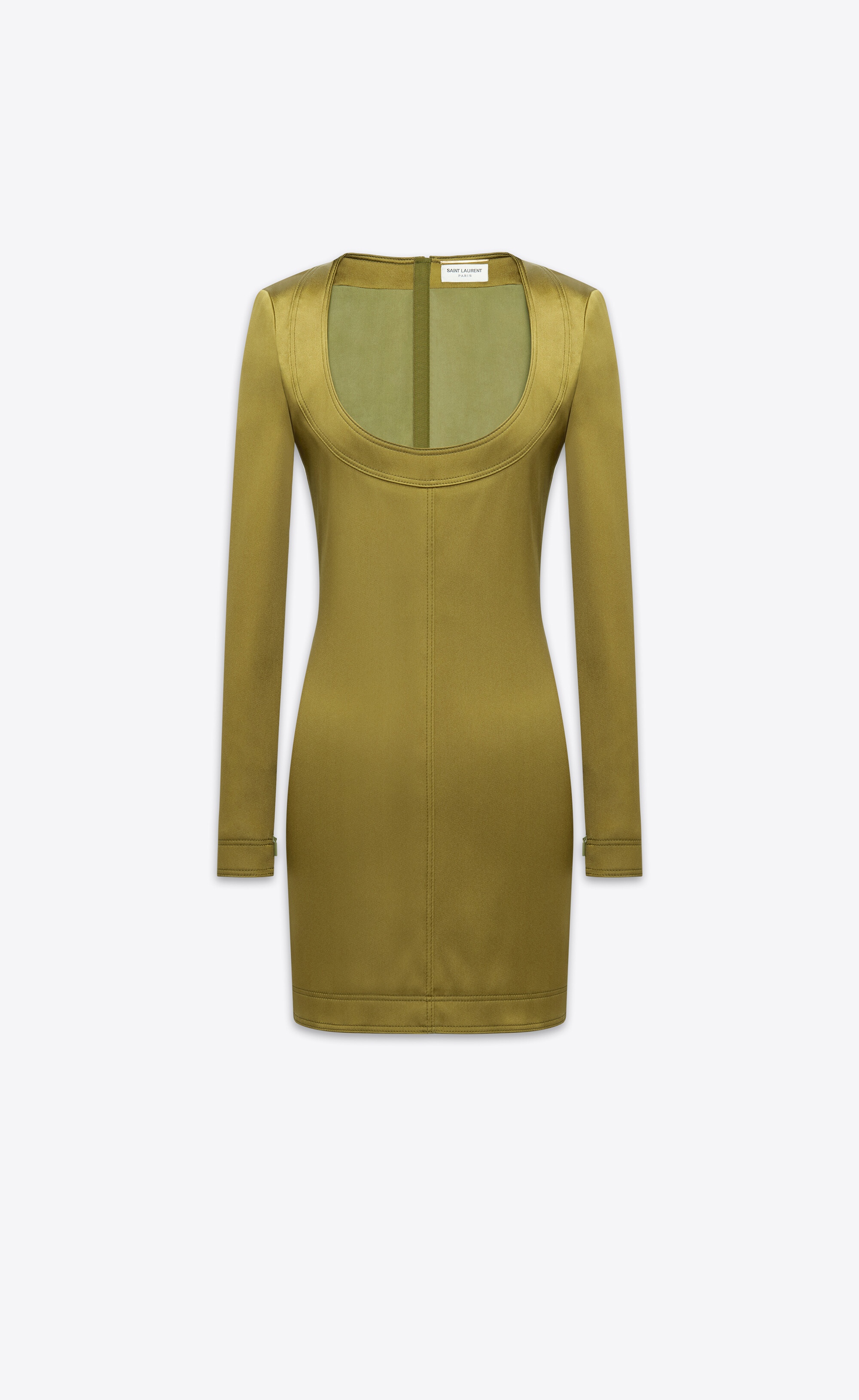 SHORT DRESS FEATURING LONG SLEEVES AND A PLUNGING ROUND NECK WITH WIDE TRIM. - 69% SILK, 28% POLYAMIDE, 3% ELASTANE - SILK AND ELASTANE LINING - CONCEALED BACK ZIP CLOSURE WITH HOOK-AND-EYE SAFETY - PLUNGING ROUND NECK - CONCEALED ZIP CUFFS WITH HOOK-AND-EYE SAFETY - STYLE ID 786465Y3H703578 - MADE IN ITALY