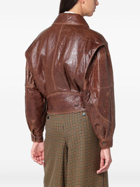 puffed-sleeve leather jacket