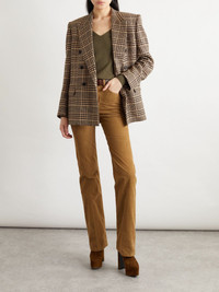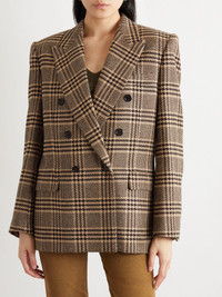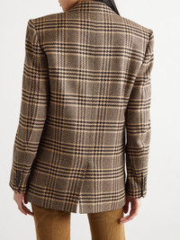 Double-breasted checked silk and cashmere-blend blazer Brown