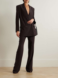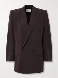 EDITORS'NOTES Chocolate brown is huge this season and SAINT LAURENT's blazer is such an easy way to tap into the trend. It's made from silk-crepe and has a double-breasted front with classic notch lapels. SIZE & FIT Model measurements: - Fits true to size, take your normal size - Tailored for a loose fit - Internal shoulder pads - Lightweight, non-stretchy fabric - Model is 180cm/ 5'11" and is wearing a FR 36 - Bust: 78cm/ 31" - Waist: 65cm/ 25.5" - Hip: 90cm/ 35.5" DETAILS & CARE - Chocolate silk-crepe - Button fastenings through double-breasted front - 100% silk - Dry clean