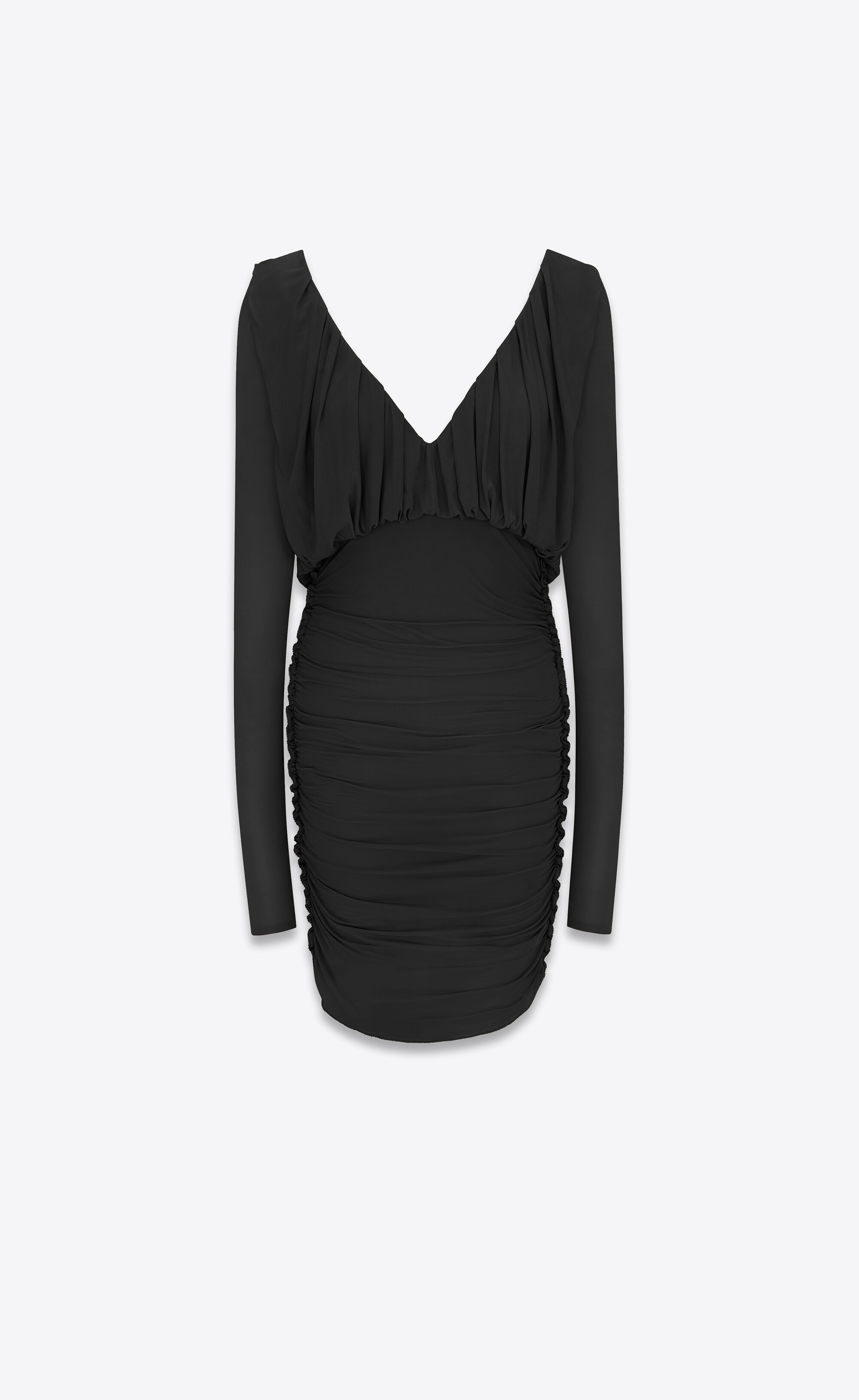FITTED SHORT DRESS WITH LONG SLEEVES, V-NECK AND RUCHING ON THE SEAMS. - 100% CUPRO - V-NECK - STYLE ID 729749Y5G981000 - MADE IN ITALY