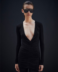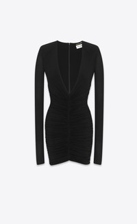 SHORT DRESS WITH PLUNGING V-NECK, SHOULDER PADS AND GATHERED DETAILS. - 92% CUPRO, 8% ELASTAN - BACK ZIP CLOSURE - PLUNGING V-NECK - PADDED SHOULDERS - STYLE ID 732870Y5G891000 - MADE IN ITALY