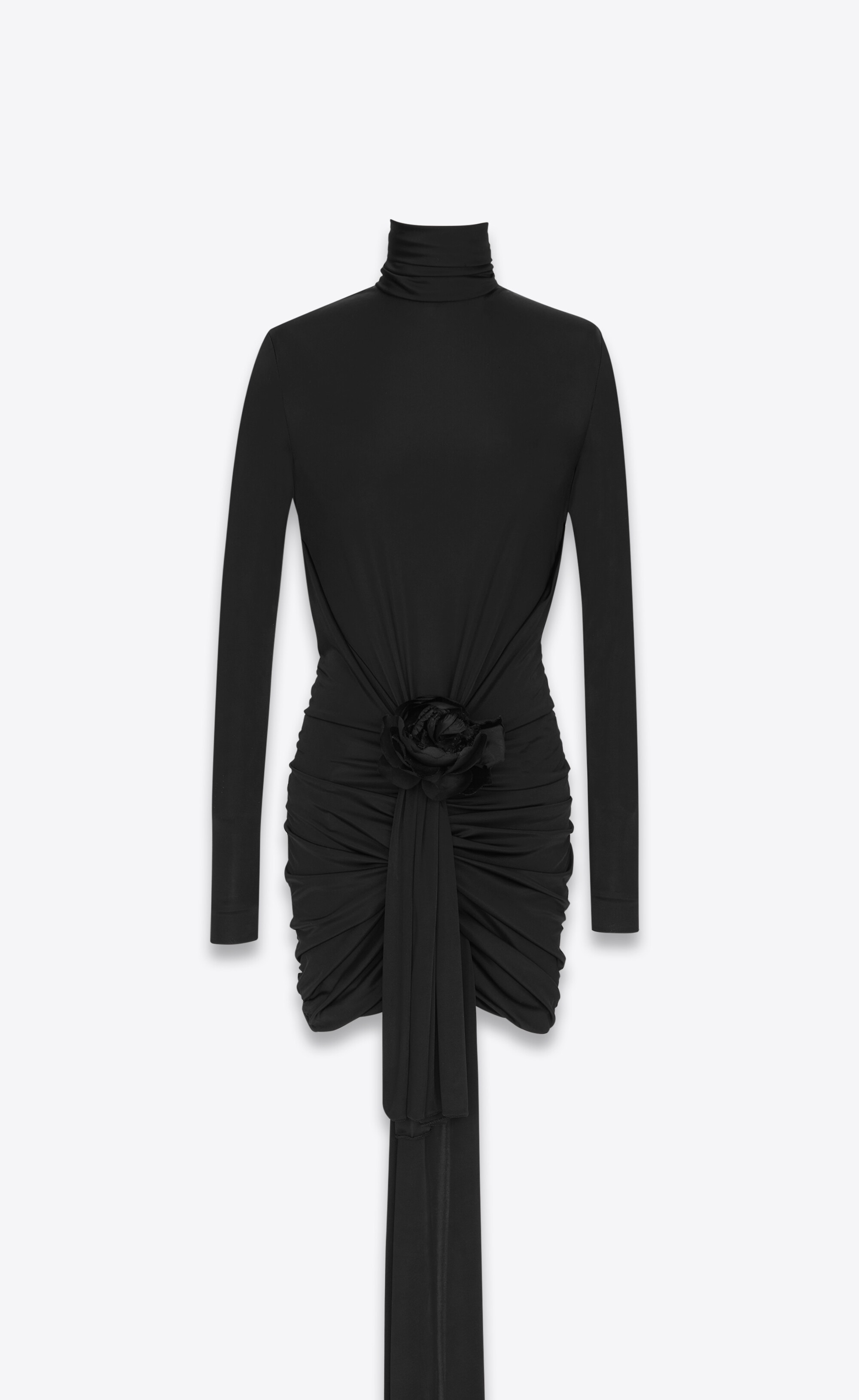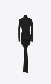LONG-SLEEVED MINI-DRESS WITH HIGH NECK AND LONG DRAPED TAIL AT THE FRONT DECORATED WITH A FLOWER. - 100% VISCOSE - VISCOSE FROM CERTIFIED SUSTAINABLY MANAGED FORESTS - HIGH NECK - STYLE ID 720879Y7F981000 - MADE IN ITALY