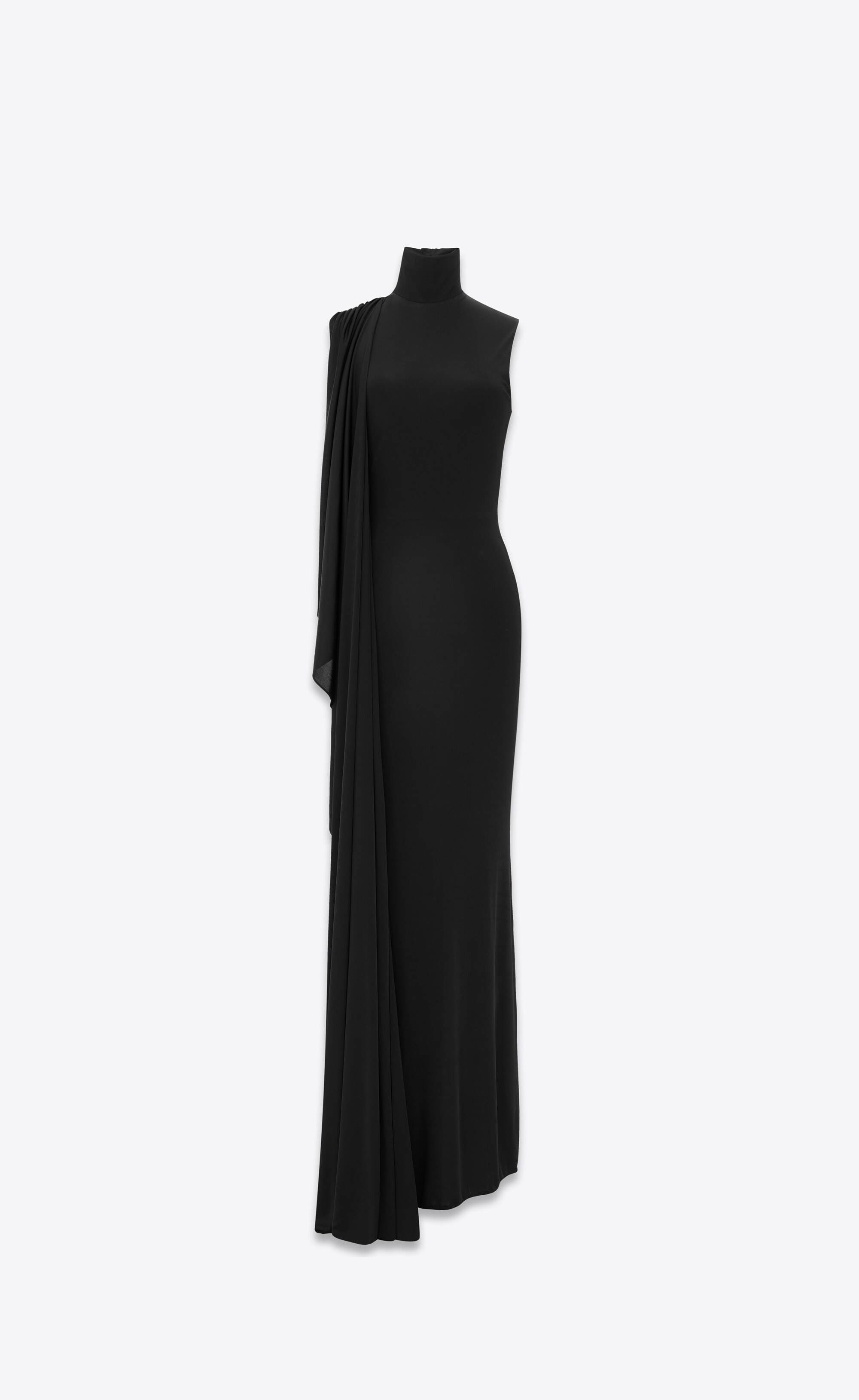 SLEEVELESS COLUMN DRESS MADE WITH RESPONSIBLE VISCOSE, FEATURING A TURTLENECK, DRAPED ONE-SHOULDER CAPE AND SIDE SLIT. - 100% VISCOSE - RESPONSIBLE VISCOSE - TURTLENECK - SIDE SLIT - STYLE ID 768570Y37CD1000 - MADE IN FRANCE