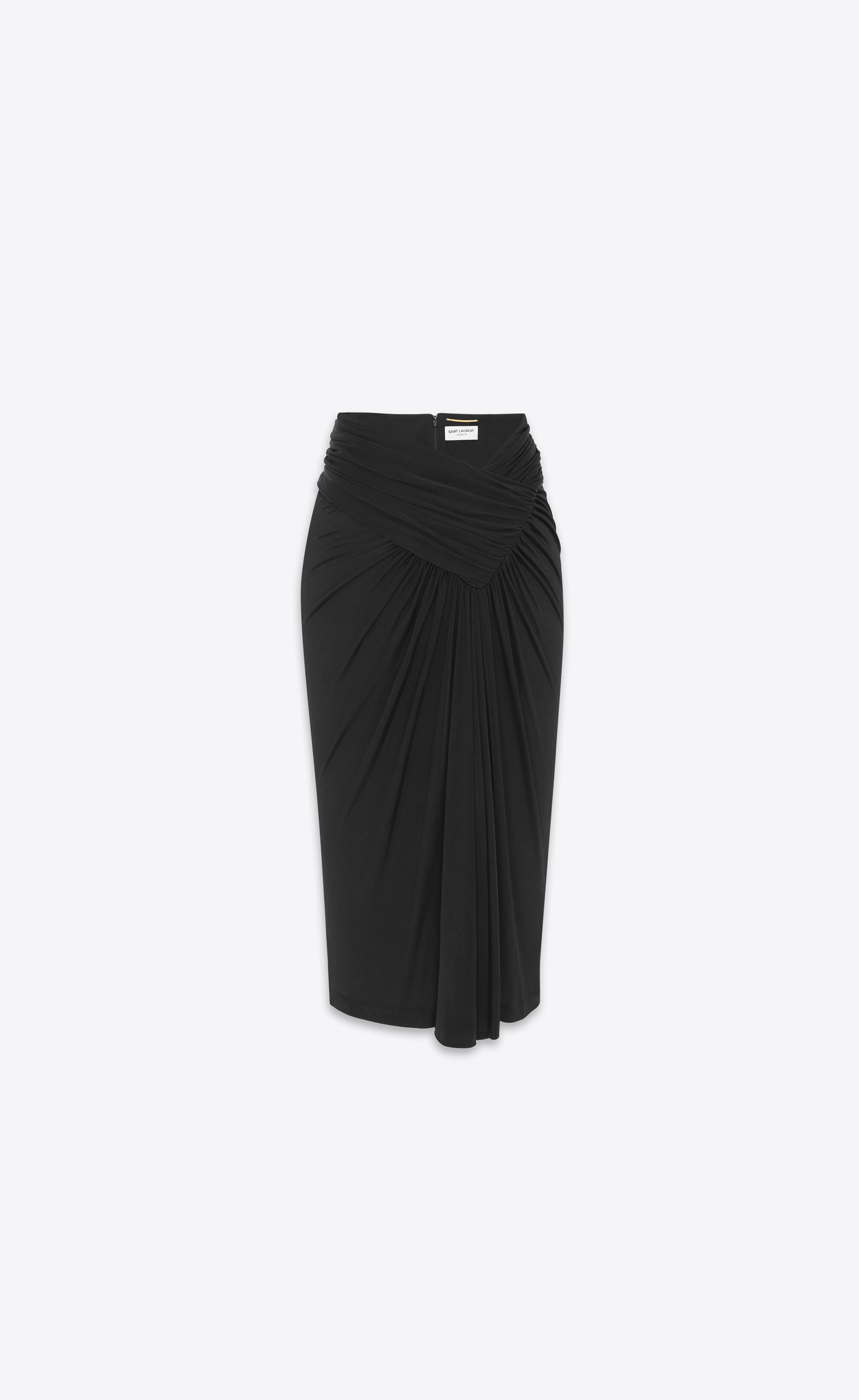 GATHERED PENCIL SKIRT WITH A CROSSOVER V-CUT WAISTLINE, MADE WITH RESPONSIBLE VISCOSE. - 100% VISCOSE - RESPONSIBLE VISCOSE - CONCCEALED HOOK AND ZIP CLOSURE AT THE BACK - STYLE ID 776439Y7F981000 - MADE IN ITALY