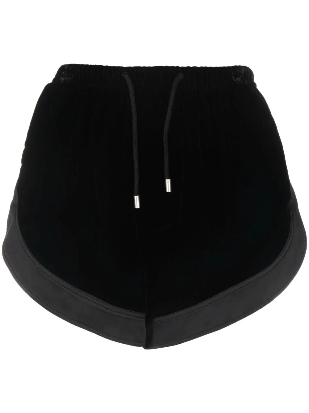 drawstring-fastening mini shorts Simple and versatile, these mini shorts from Saint Laurent's SS collection come in a black hue highlighted with silk trim. Its design features a practical drawstring waist and a curved hem. Made in Italy Composition Outer: Viscose 65%, Cupro 35% Lining: Silk 100% SIZE & FIT Model measurements Height 5 ft 10 in(1.77 m) Bust/Chest 27.95 in(71 cm) Hips 33.85 in(86 cm) Waist 23.22 in(59 cm) Measurement FRONT RISE 12 in(30.5 cm) BACK RISE 14.48 in(36.8 cm) HIPS 30.98 in(78.7 cm) WAIST 22.99 in(58.4 cm) FittingInformation This piece fits small – you might want to get one size up Designed to be fitted at the waist, loose over the leg Made with a mid-weight non-stretch fabric Washing instructions Dry Clean Only