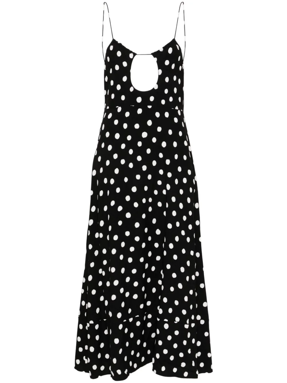 polka dot midi dress Highlights - Black/white - Silk - Crepe texture - Polka dot print - Cut-out detailing - Square neck - Spaghetti straps - Low back - Concealed rear hook and zip fastening - Fitted waistline - Flared skirt - Full lining - Straight hem - Mid-length Made in France Composition Lining: Silk 100% Outer: Viscose 100% Washing instructions Dry Clean Only