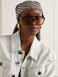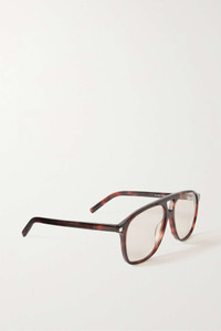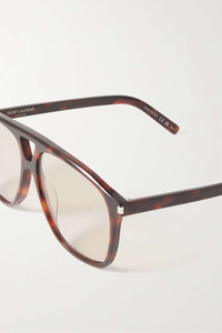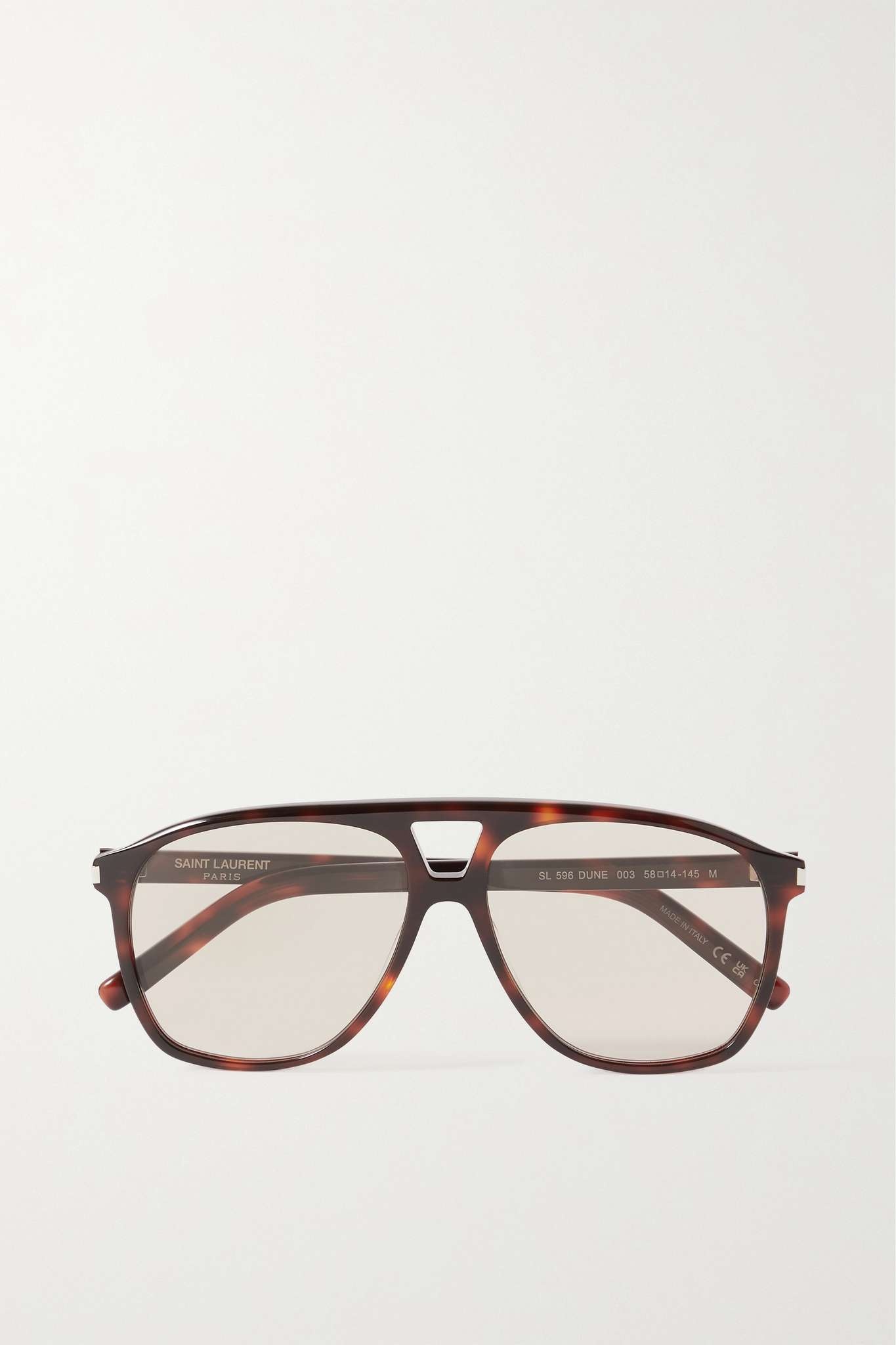 EDITORS'NOTES Yves Saint Laurent was rarely photographed without his distinctive glasses and his love of statement frames inspires the house's eyewear collection. These 'Dune' tortoiseshell acetate sunglasses are inspired by Anthony Vaccarello's inputs for the Spring '23 collection. They have aviator-style frames and subtly tinted lenses. DETAILS & CARE - Tortoiseshell acetate - Designer color: Havana - Come with a case - 100% UV protection