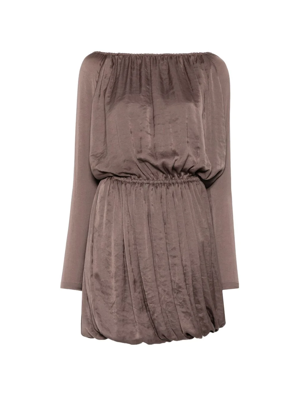 elasticated long-sleeve midi dress Highlights - Brown - Elasticated waist - Long sleeve - Gathered detailing - Boat neck - Pleated skirt Made in France Composition Polyester 100% Washing instructions Machine Wash