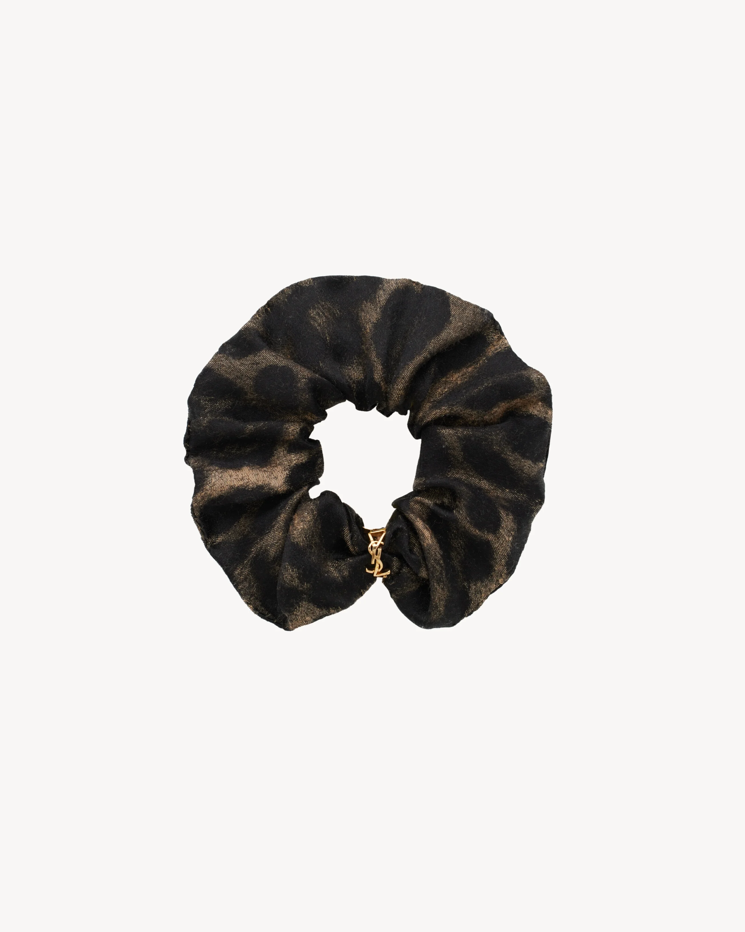 SCRUNCHIE DECORATED WITH A LEOPARD MOTIF, FEATURING A TWISTED CASSANDRE RING. - TWISTED CASSANDRE METAL RING - 65% SILK, 35% CASHMERE - STYLE ID 8431753YS362280 - MADE IN ITALY