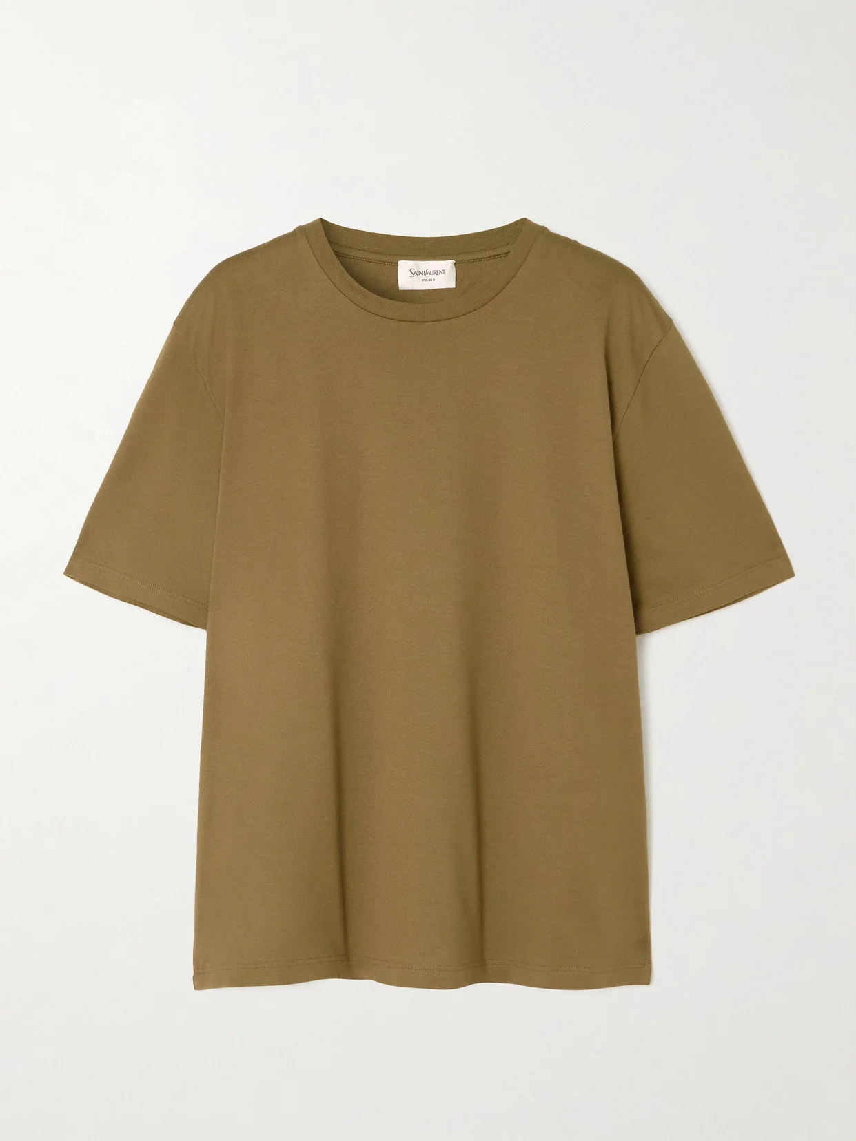 SAINT LAURENT believes in textile excellence right down to the basics. This T-shirt is cut from soft, breathable cotton-jersey and embroidered at the nape with the original logo in discreet, tonal threads. If you're a fan of the fit and feel, invest in one in each color.