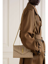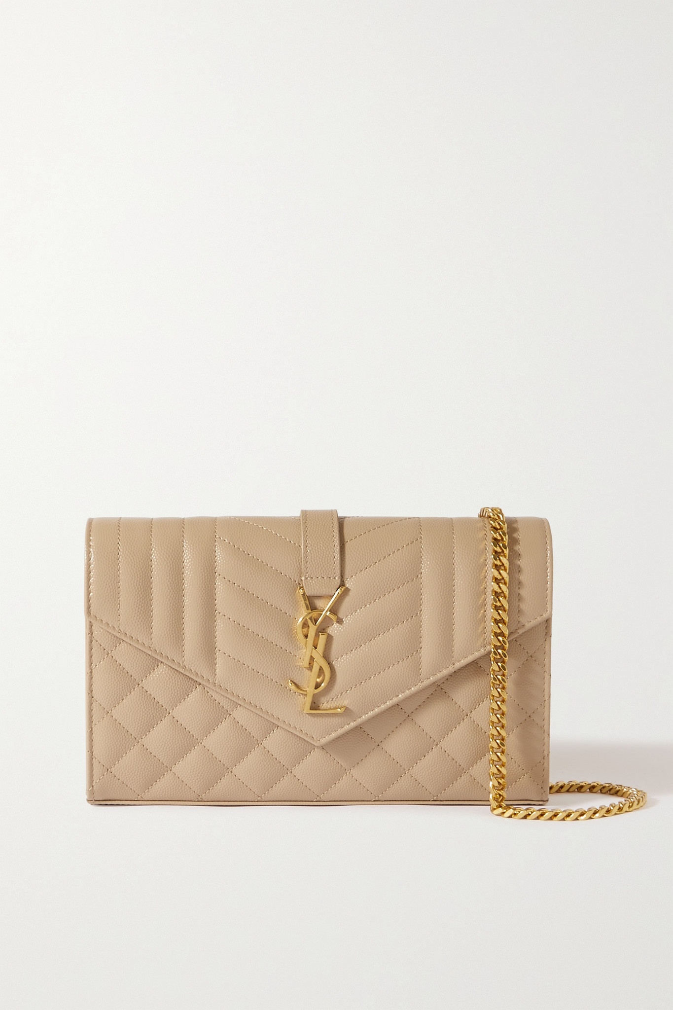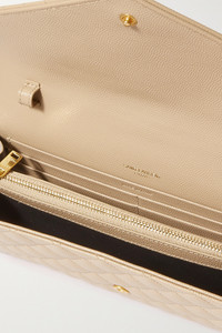 CHAIN WALLET WITH A FRONT FLAP MADE WITH METAL-FREE TANNED LEATHER, DECORATED WITH METAL YSL INITIALS AND A MIX OF VERTICAL, CHEVRON AND DIAMOND QUILTED OVERSTITCHING, FEATURING A DETACHABLE CHAIN STRAP. - 100% CALFSKIN LEATHER - CHROME FREE AND METAL FREE TANNED LEATHER - DIMENSIONS: 22,5 X 14 X 4 CM / 8.6 X 5.5 X 1.5 INCHES - SHOULDER STRAP DROP: 48 CM/18.8 INCHES - GOLD-TONED METAL HARDWARE - SNAP-BUTTON CLOSURE - INTERIOR: TWO MAIN COMPARTMENTS SEPARATED BY A ZIP COMPARTMENT, ONE BILL COMPARTMENT, TEN CARD SLOTS - STYLE ID 809975429 - MADE IN ITALY