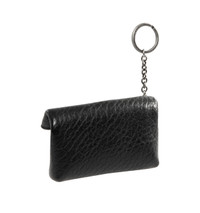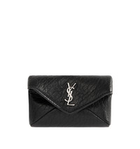 SAINT LAURENT Envelope Key Case in grained leather featuring a chain and key ring that may be attached to a bag as a charm, leather lining, silver-tone hardware and snap-button closure. 3.9" x 2.6" x 1". Lambskin. Made in Italy. DESIGNER STYLE ID: 844678-AACIA COLOR: 1000 NERO