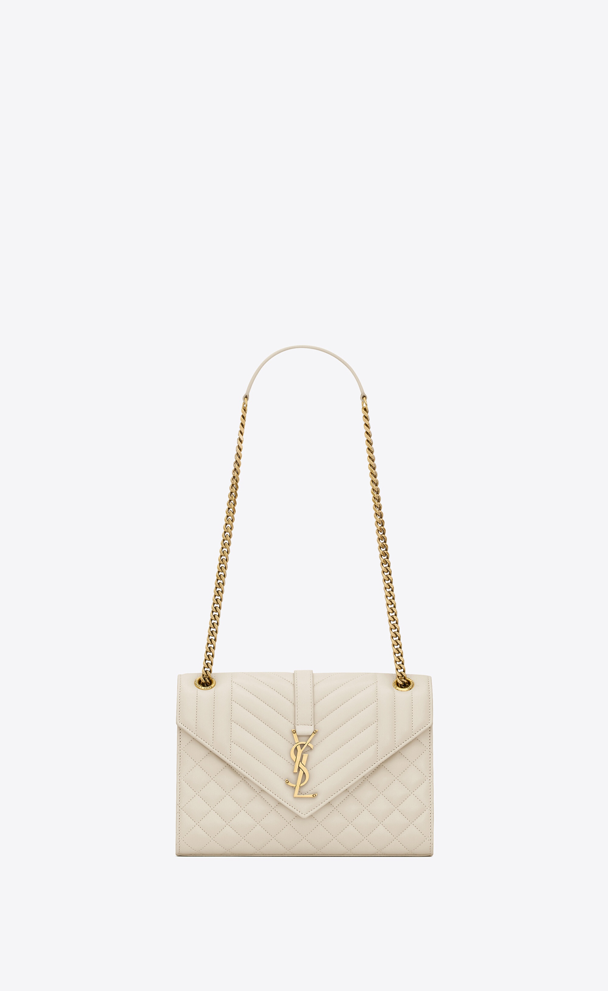 A TIMELESS ENVELOPE BAG IN LAMBSKIN WITH VERTICAL, CHEVRON AND DIAMOND QUILTED TOPSTITCHING. THIS VERSATILE PIECE FEATURES A SLIDING LEATHER-AND-CHAIN STRAP THAT CAN BE WORN TWO WAYS. - 90% LAMBSKIN, 10% METAL - ORGANIC COTTON LINING - BRONZE-TONED HARDWARE - ONE FLAP POCKET AT THE BACK - MAGNETIC SNAP CLOSURE - DIMENSIONS: 24 X 17.5 X 6 CM / 9.4 X 6.9 X 2.3 INCHES - HANDLE DROP: 26.5 CM / 10.4 INCHES - STRAP DROP: 55 CM / 21.7 INCHES - STYLE ID 813212226 - MADE IN ITALY