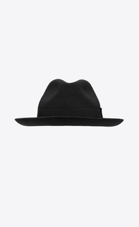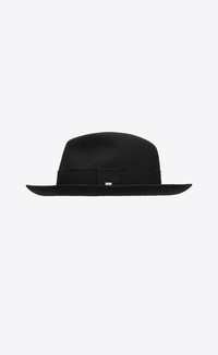 FEDORA HAT WITH A GROSGRAIN BAND. - 90% WOOL, 10% LEATHER - SAINT LAURENT ENGRAVED METAL PLAQUE - LEATHER SWEATBAND - STYLE ID 7615863YO571000 - MADE IN ITALY